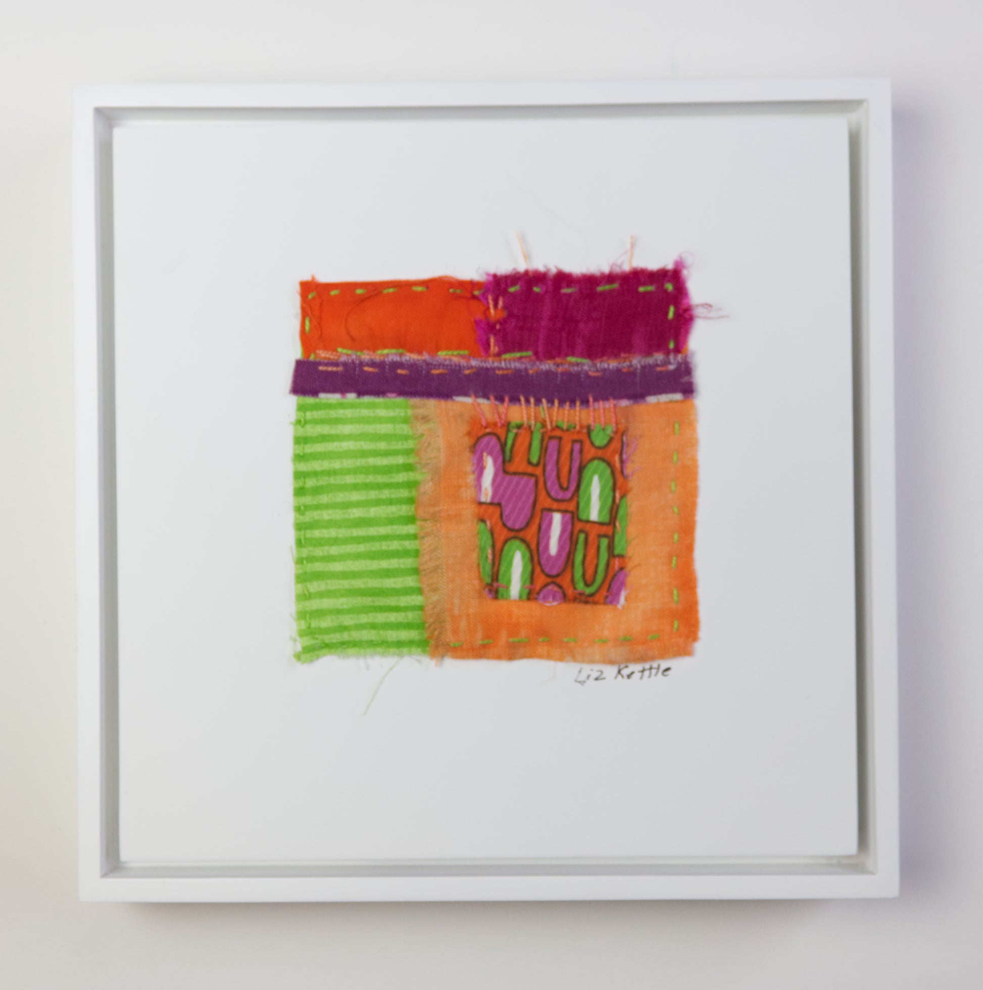 Textile collage incorporating hand-dyed fabrics and hand stitching